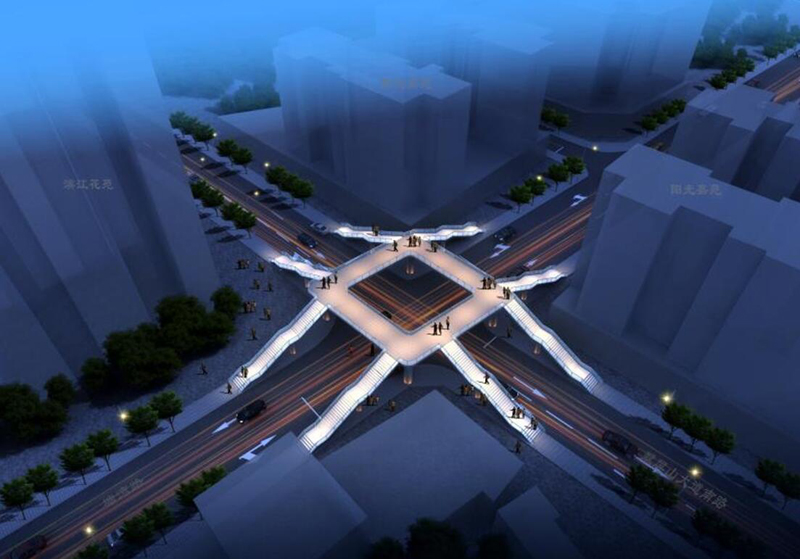 酉陽(yáng)縣過(guò)街人行天橋(一期)項(xiàng)目:(1)鐘多小學(xué)人行天橋采用“菱”形平面布置,天橋主梁寬度4.2m,凈寬4.0m;梯道寬2.5m,凈寬2.3m;在梯道兩級(jí)休息平臺(tái)均設(shè)置梯道墩,梯道下設(shè)置管理用房;(2)民族小學(xué)人行天橋:天橋采用“H”形平面布置,天橋主梁寬度4.2m,凈寬4.0m;梯道寬2.6m,凈寬2.4m;在梯道兩級(jí)休息平臺(tái)均設(shè)置梯道墩,梯道下設(shè)置管理用房;(3)酉州小學(xué)人行天橋:天橋采用“工字型”天橋全長(zhǎng)13.1m,橋面橫向全寬3.2m,凈寬3.0m;梯道寬2.0m,凈寬1.8m,每18級(jí)臺(tái)階設(shè)置休息平臺(tái)。本工程于2018年10月19日開(kāi)工建設(shè),2019年10月16日完成全部工程建設(shè)。