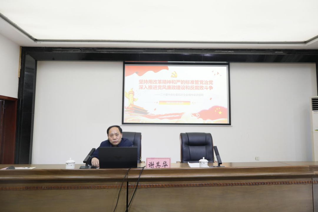 【3月20日訊 楊宜霖】 為深入學習宣傳貫徹二十屆中紀委四次全會精神,教育引導集團全體黨員干部深入理解、全面把握其精神實質和核心要義。3月19日上午,集團按照縣紀委統一部署,舉行二十屆中紀委四次全會宣講。縣紀委派駐財政局紀檢監察組組長謝其華作專題宣講,集團領導班子、中層副職以上干部、全體黨員參加會議。